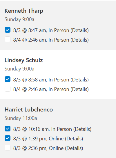 In addition to checking in more than once, congregants will often check into the wrong location. This looks like checking in online while actually being in person. Noticing the difference here is simple.