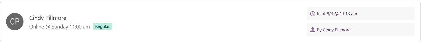 We can see that Lisa has been checked in online by an automation. Because of this, we know that Lisa did attend online because the use of an automation indicates that she used our online check-in form which our system used to check her in. We do not need to adjust her check-in.